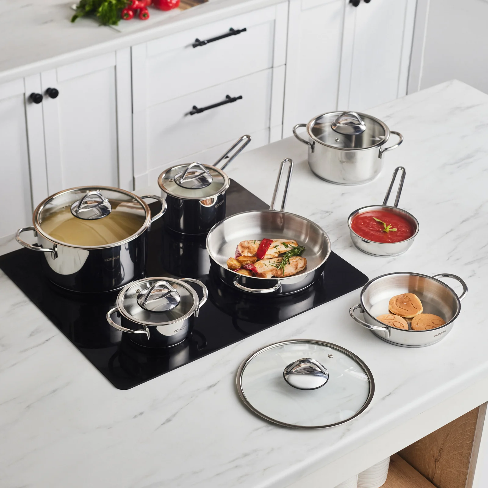 Karaca Ada - 12-delige set stalen pannen