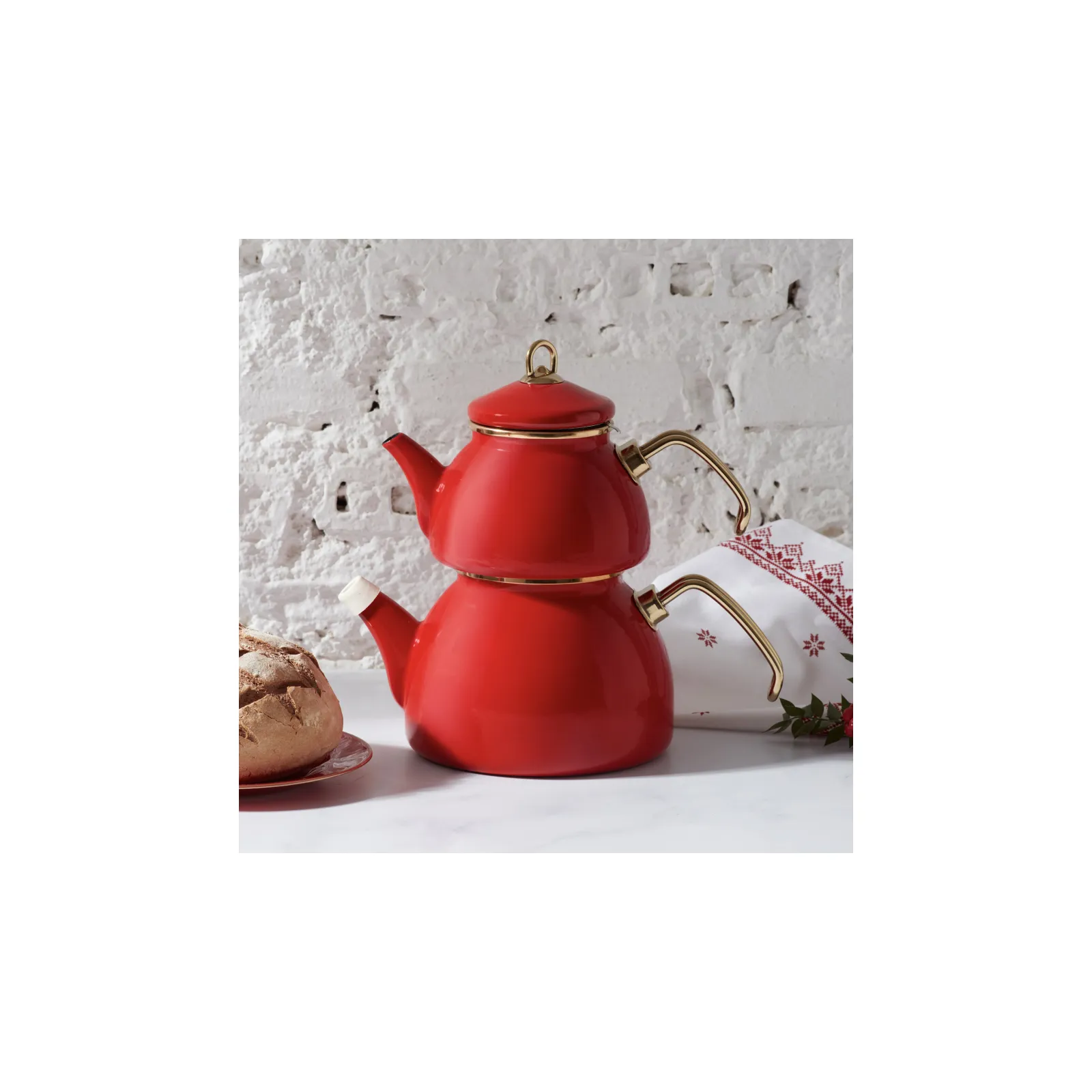 Karaca Retro, emaillen theepot, rood
